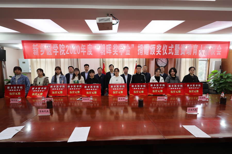2020年10月27日上午,新鄉(xiāng)醫(yī)學(xué)院2020年度“朝暉獎(jiǎng)學(xué)金”捐贈(zèng)儀式暨助資育人座談會(huì)在新鄉(xiāng)醫(yī)學(xué)院北校區(qū)三樓會(huì)議室舉行。東安控股集團(tuán)董事長(zhǎng)堵召輝先生、總監(jiān)曹若天,新鄉(xiāng)醫(yī)學(xué)院黨委書(shū)記陳建國(guó)、黨委委員副書(shū)記赫洪軍等領(lǐng)導(dǎo)人和學(xué)生代表參加了頒獎(jiǎng)儀式和座談會(huì)。