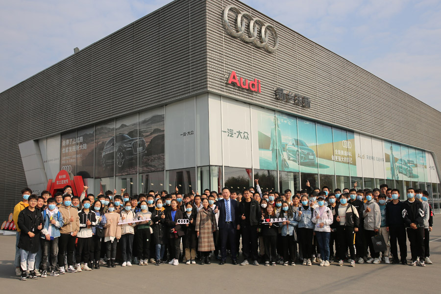 中午11點鐘,同學們來到東新奧迪4S店進行參觀學習,銷售總監(jiān)蔣振勝給廣大同學們講解了奧迪的各款車型、服務接待流程、售后接待流程,又帶領大家進入售后保養(yǎng)車間進行參觀學習,參觀學習期間同學們對奧迪的服務和售后贊嘆不已,并表示今天收獲很多,更加堅信了學習的興趣和動力。