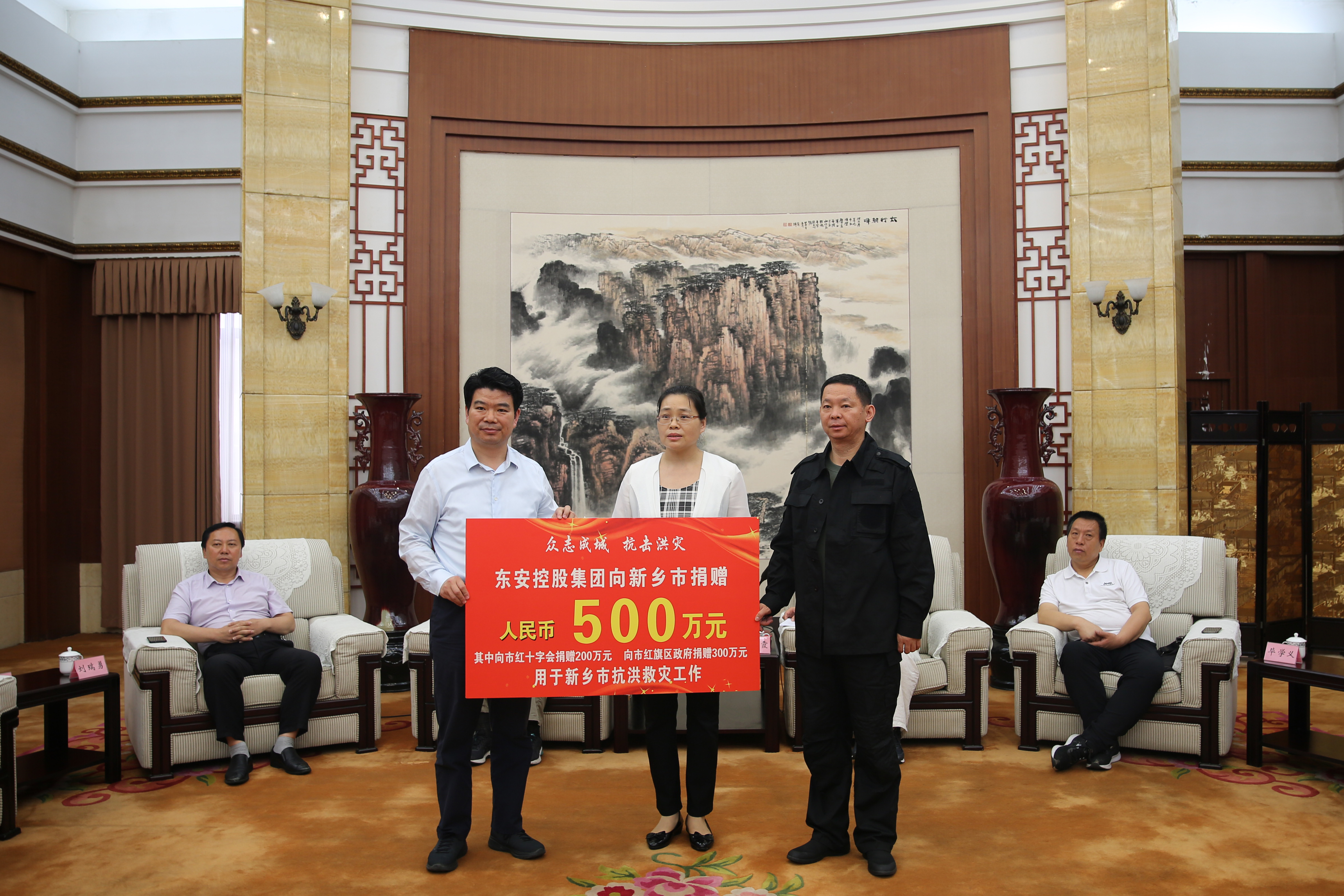 7月20日,河南多地出現(xiàn)連續(xù)強(qiáng)降雨天氣,洪水漫灌,城區(qū)內(nèi)澇,人民群眾生命財(cái)產(chǎn)安全受到嚴(yán)重威脅。7月23日上午,省人大代表、市人大常委、東安控股集團(tuán)董事長(zhǎng)堵召輝代表集團(tuán),向新鄉(xiāng)市捐款500萬元,緊急支援地區(qū)防汛救災(zāi)工作。