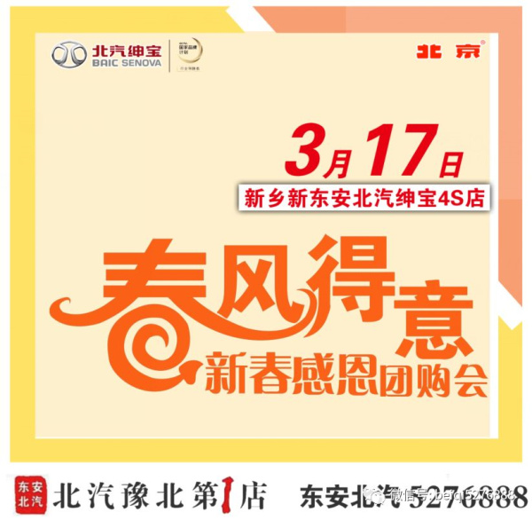 東安北汽特舉行新春團(tuán)購(gòu)會(huì),全系車(chē)型給您數(shù)不盡的優(yōu)惠!凡進(jìn)店的客戶(hù)朋友均有禮品贈(zèng)送!