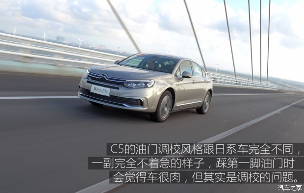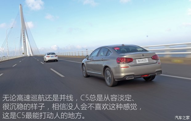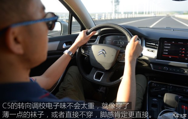 C5無論在低速還是高速行駛(受路況限制,只開到100km/h)、直線巡航或者并線動(dòng)作,都表現(xiàn)得非常沉穩(wěn),你握著方向盤會覺得心理很踏實(shí)。從行駛性能的角度看,C5的底盤調(diào)校向來都能讓人滿意。