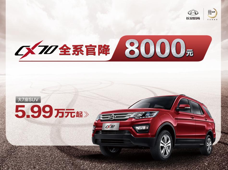 因此,為對這樣的銷售戰(zhàn)果乘勝追擊,達(dá)到長安CX70月銷沖兩萬的成績,4月20日,長安歐尚調(diào)整營銷策略,官方宣布CX70全系官降8000元,其中標(biāo)準(zhǔn)型的降幅更是達(dá)到1萬元,此輪調(diào)整之后,CX70的售價區(qū)間已下探至5.99-7.69萬元。