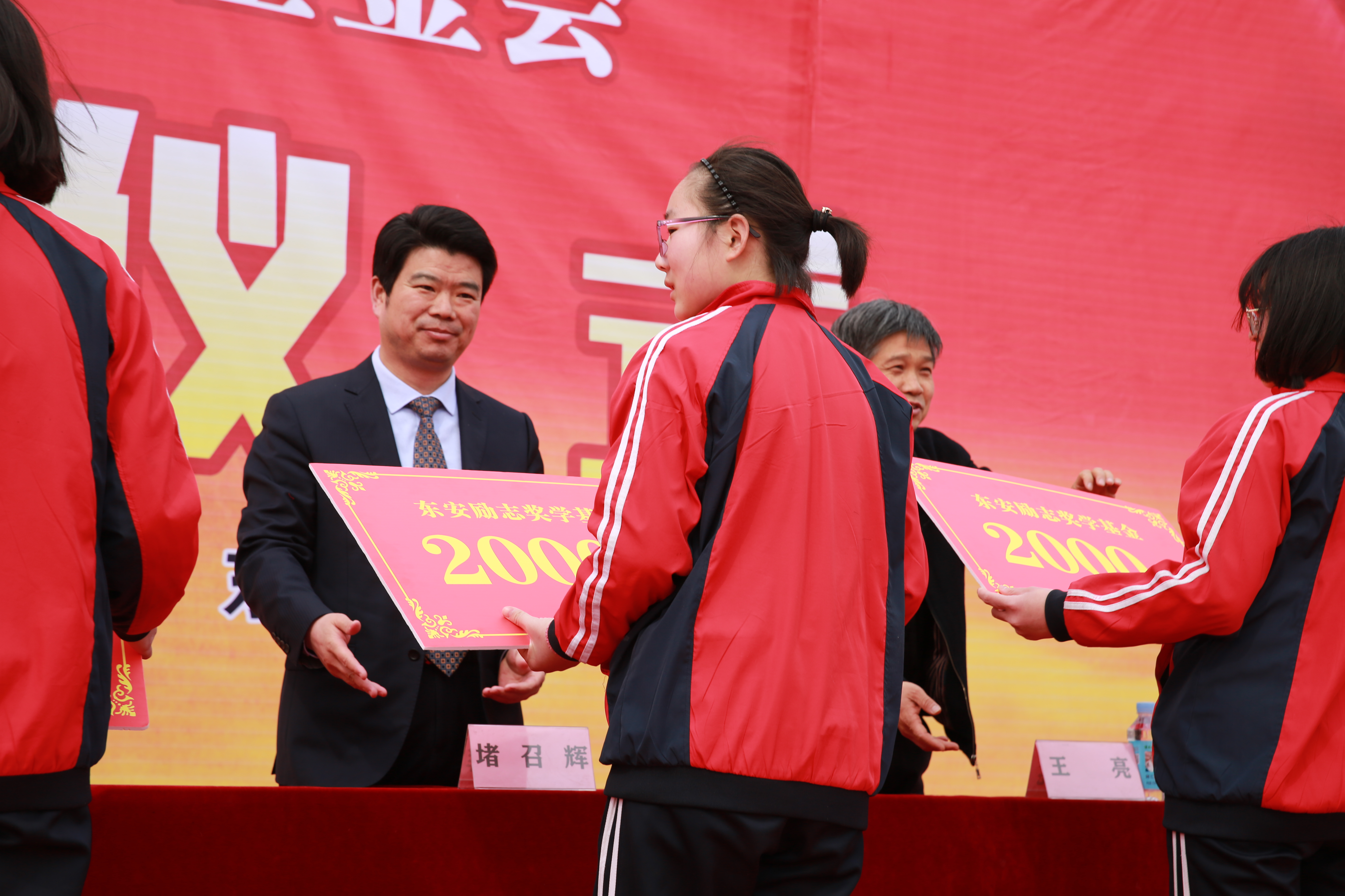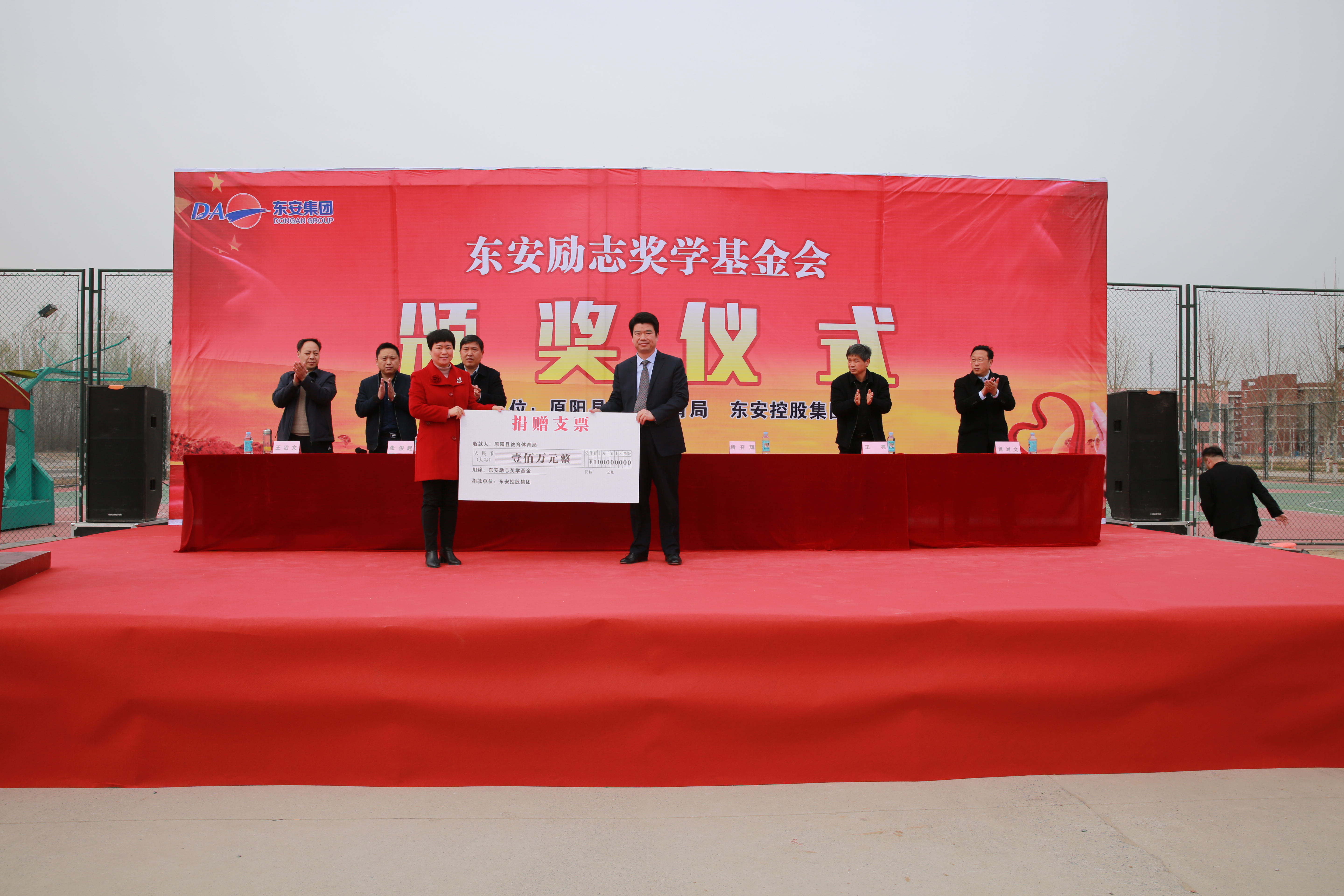 本學(xué)期頒獎(jiǎng)儀式,東安控股集團(tuán)捐資100萬(wàn)元,受獎(jiǎng)范圍包括高考考入清華、北大、“985”院校的學(xué)生、全縣高中、初中、小學(xué)的學(xué)生。